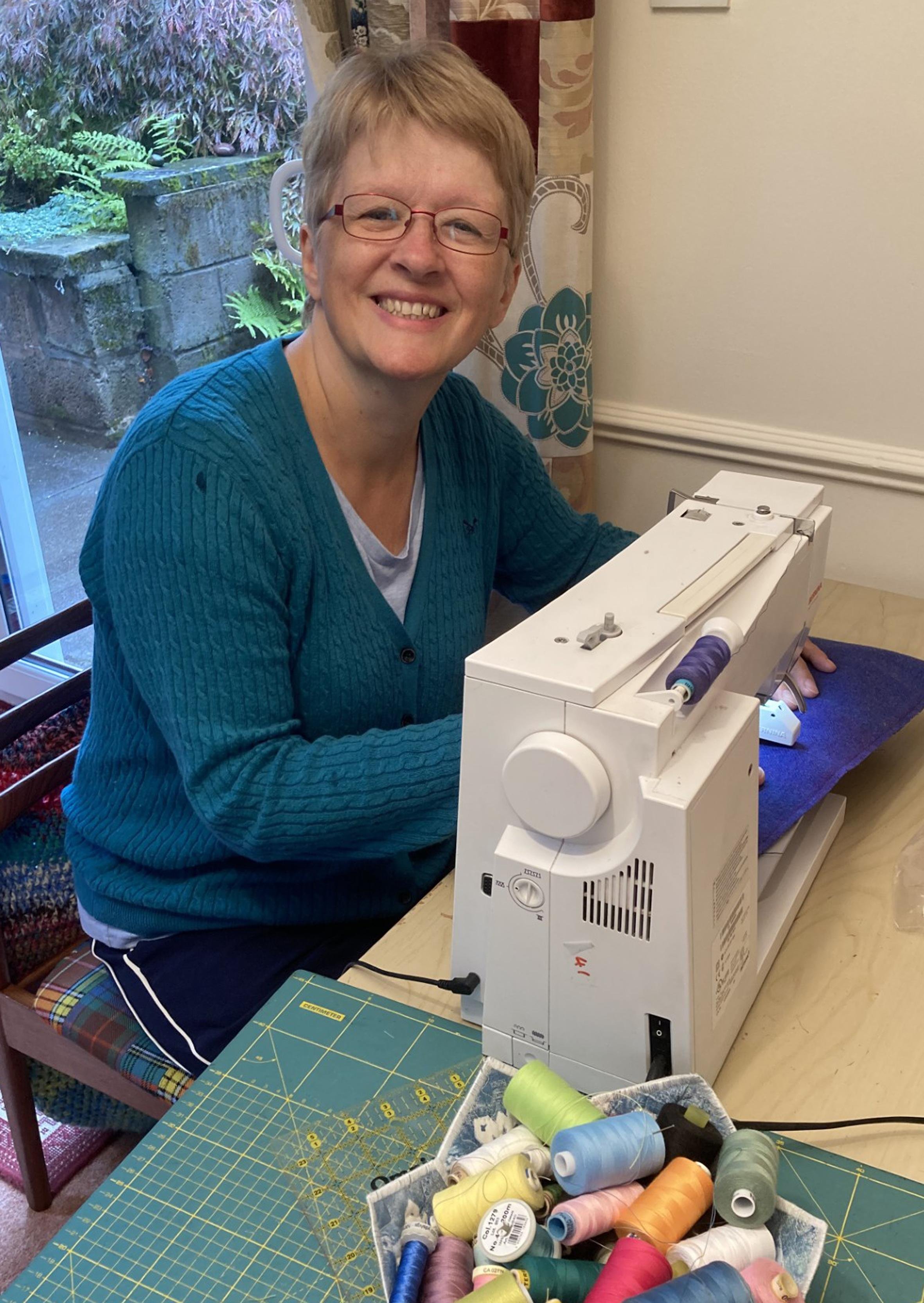 When creating her fabric collages, Julie works from sketches, paintings and photos. She uses a variety of fabrics to build up the scene before adding detail with machine embroidery which, like her drawing style, tends to be loose and expressive rather than precise. Julie’s love of textile art began with patchwork, a method that she finds both comforting and rewarding as she develops the craft with her own unique designs. As a lover of colour, Julie really enjoys selecting colours and patterns that work together. She also likes the idea of using scraps and off-cuts. Not only is this less wasteful, it also allows the incorporation of fabrics that hold special meaning or memories.